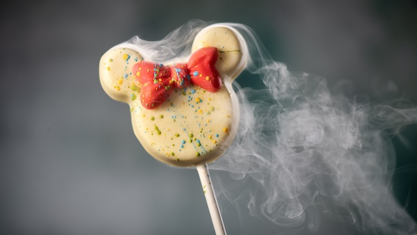 - Liquid Nitrogen Minnie cake pop with berry sponge cake, white chocolate ganache, and colorful chocolate splats (New)