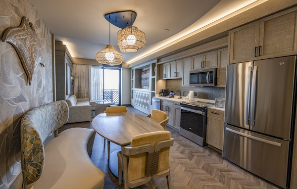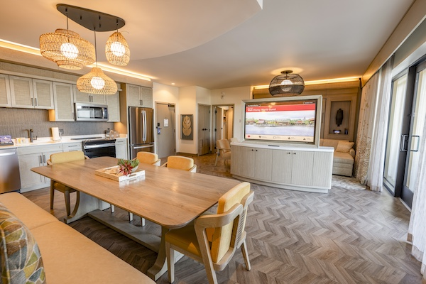 Disney Vacation Club is debuting a stunning new type of accommodation in the new Tower: two-bedroom penthouse villas. Sleeping up to eight guests, these spaces will boast a spacious living room, dining room and gorgeous views of the Seven Seas Lagoon and Magic Kingdom park or Disney’s Oak Trail and Magnolia Golf Courses.